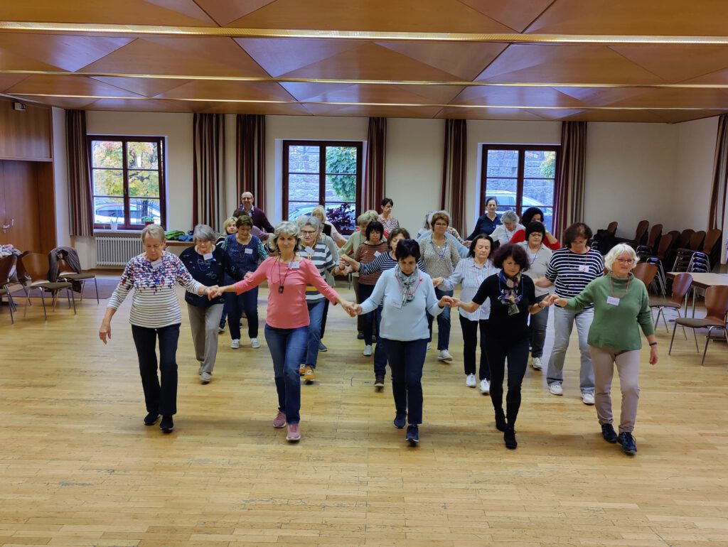 Seit September 2025 bietet die zertifizierte Tanzleiterin Elisabeth Aumann einmal wöchentlich, montags von 9 – 10.30 Uhr den Kurs „Bleib fit, mach mit!“ an. Es werden Volks-, Kreis-, Paartänze, auch Line Dance zu internationaler Musik gelernt. (Bild: Centa Weber)